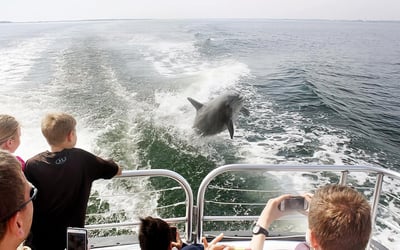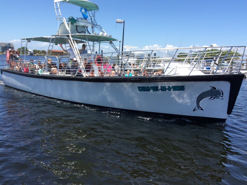 Chase-N-Fins delivers consistently excellent dolphin tours with a crew that genuinely loves what they do. Captain Alex and Misty get called out repeatedly for being knowledgeable, engaging, and creating a fun atmosphere on board. Guests appreciate how the crew shares interesting facts about dolphins and local wildlife, points out Navy bases and waterfront homes, and keeps everyone entertained throughout the trip. The vibe is relaxed and welcoming, with crew members sometimes even playing music and dancing along with guests while dolphin watching. The dolphin sightings seem reliably impressive, with multiple reviewers mentioning they saw dolphins almost immediately or spotted many throughout the cruise. What really stands out is how personable and accommodating the crew is—they clearly care about making each tour special and memorable. Families especially love the experience, finding it perfect for all ages and educational without feeling stuffy. The overall experience gets described as smooth, well-organized, and the kind of activity people want to book again on their next visit.