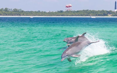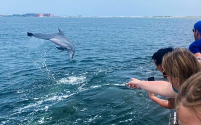 Cruise Pensacola Bay and surrounding waters in search of dolphins. Move freely on open decks or relax in shaded areas as the crew shares insights on marine life and local landmarks.