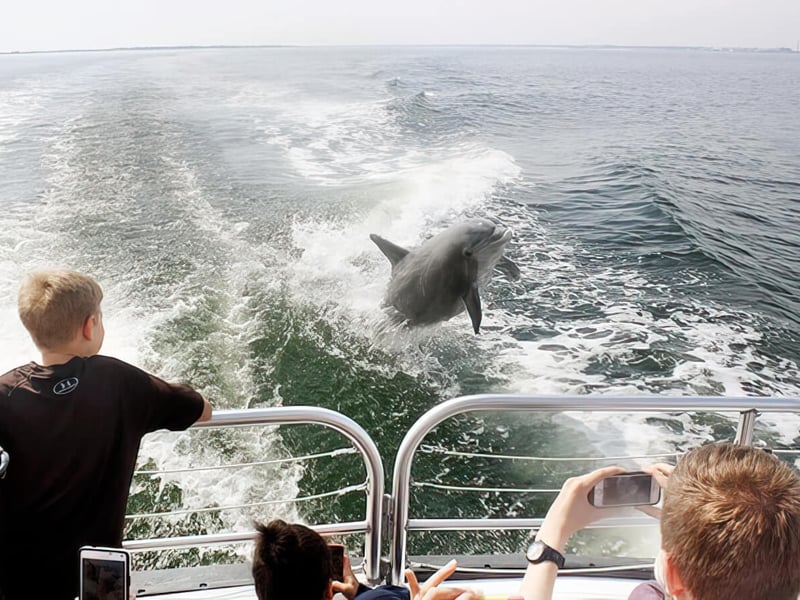 Look for wild dolphins on a 1.5–2 hour cruise with a knowledgeable crew